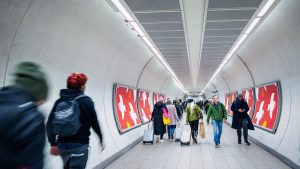 The London Underground carries millions of passenger journeys daily, making it one of the most impactful out-of-home advertising environments in the UK. Brands can utilise a range of formats including Tube car panels, escalator panels, cross track posters, digital screens and full station takeovers.